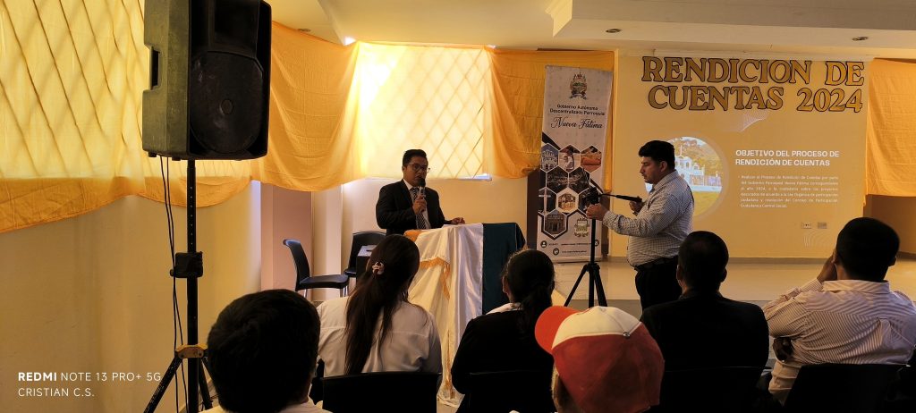 El Gobierno Autónomo Descentralizado Parroquial Nueva Fátima realizo el evento de Rendición de Cuentas 2024 en el Salón Social del GAD ubicado en la calle 13 de Octubre frente al Coliseo Parroquial y adicional a ellos se transmitió en vivo desde la Pagina de Facebook GAD Parroquial de Nueva Fátima.