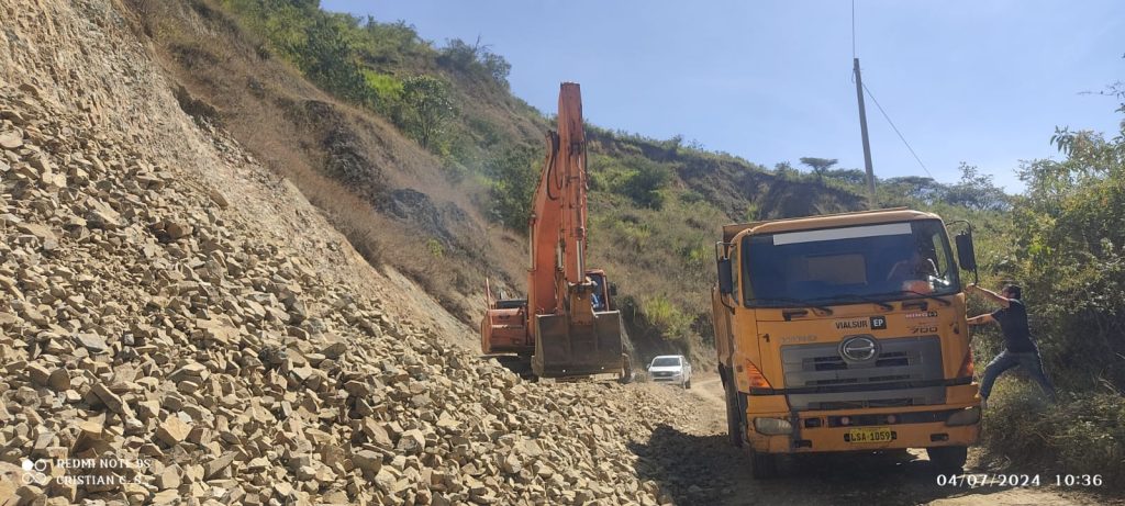 Continuamos con los trabajos de mantenimiento vial en la vía Sozoranga – Nueva Fátima con el apoyo de la Prefectura de Loja en el desalojo y ampliación de la misma así como la colocación de lastre en los lugares más críticos.