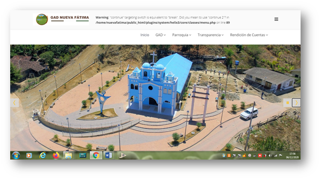 Debido a que el GAD Parroquial no contaba con página web se contrató la elaboración de la misma (www.nuevafatima.gob.ec) para visibilidad y transparencia de los diferentes proyectos que el GAD PARROQUIAL NUEVA FÁTIMA ADMINISTRACIÓN 2019-2023 Realizará.