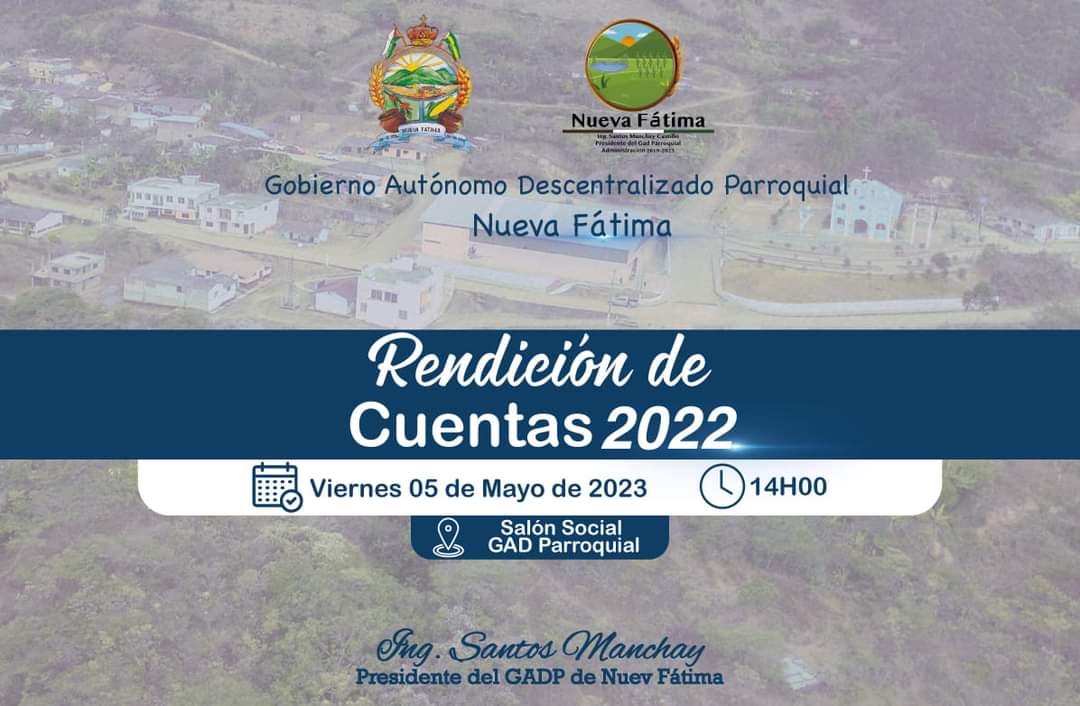En cumplimiento y conforme lo dispone la Ley Orgánica de Participación Ciudadana y Control Social, EL Gobierno Parroquial procederá a la “RENDICIÓN DE CUENTAS” correspondiente al periodo 1 enero – 31 diciembre 2022